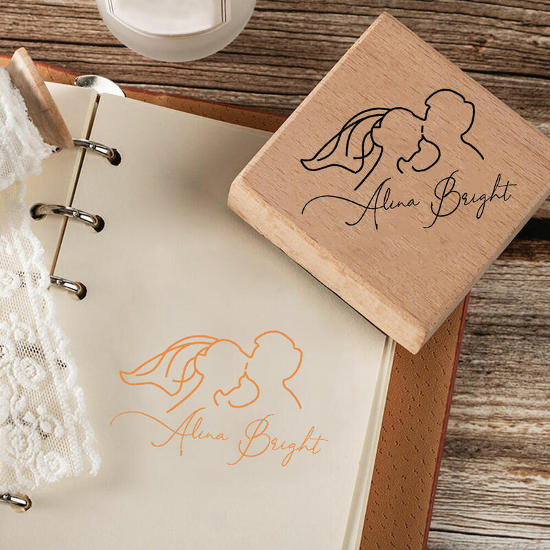 Personalized Wood Stamp Sketch Outline Portrait Stamp Add Name Valentine Gift for Her