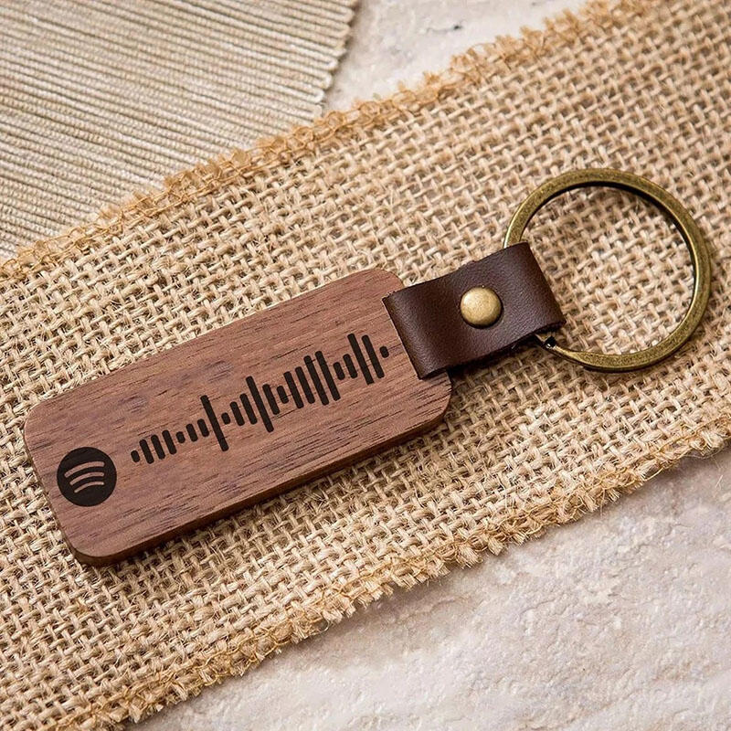 Scannable Spotify Code Custom Music Song Wooden Keychain for Him